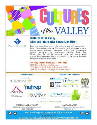 Cultures of the Valley Diversity Event (Other) 1pm-4pm | Location: 7232 Balboa Blvd., Van Nuys, CA 91406 Room: Auditorium (Rm #1) Type: Other Cost: Free